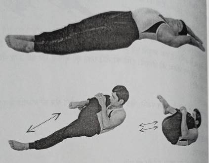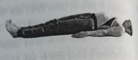 दायें घुटने को मोड़ें। अपनी अंगुलियों को दायीं जांघ के नीचे आपस में जकड़ लें। पैर के अंगूठों को आगे की ओर रखते हुए, घुटने की कपाली (केप) को खींचते हुए टांग सीधी करें। एड़ी भूमि पर न लगे। अब पैर के अंगूठों को ऊपर की दिशा में रखते हुए दायें टखने एवं दायें घुटने को मोड़ें ताकि जांघ छाती के निकट हो और एड़ी नितम्ब के निकट हो। सिर और मेरुदण्ड सीधे रहे। यह एक आवृत्ति है। 5 से 10 बार दोहरायें। बायीं टांग से यही क्रिया करें और फिर दोनों टांगों के साथ करें। यह कठिन अभ्यास है। ऐसे व्यक्ति न करें जिन्हें पीठ या पेट की समस्या, अथवा उच्च रक्तचाप या हृदय रोग हो।