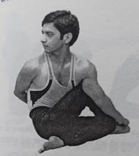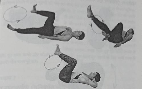 दायें घुटने को मोड़ें, पैर को बायीं जांघ पर रखें। टखने के जोड़ को जरा बाहर की ओर रखें। बायें हाथ से पैर के अंगूठे को पकड़ें। टखने के जोड़ पर ध्यान केन्द्रित करें और 5 से 10 बार घड़ी की सुईयों की दिशा में और फिर विपरीत दिशा में घुमायें। इसी क्रिया को बायें टखने के जोड़ के साथ करें।