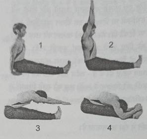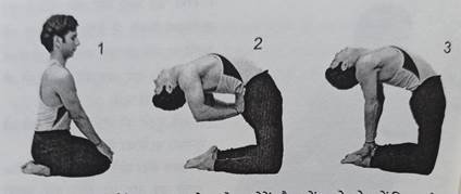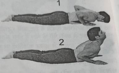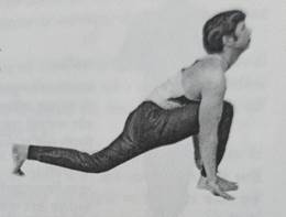 3. श्वास छोड़ें, आगे झुकें तथा सिर को भूमि पर लगाये। श्वास भरते हुए सिर गर्दन आदि ऊपर उठायें और शुरू वाली स्थिति में लौटें।