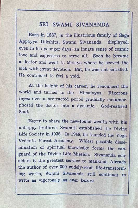 THE YOGA VEDANTA FOREST ACADEMY PRESS, P.O. Sivanandanagar. (via) Rishikesh