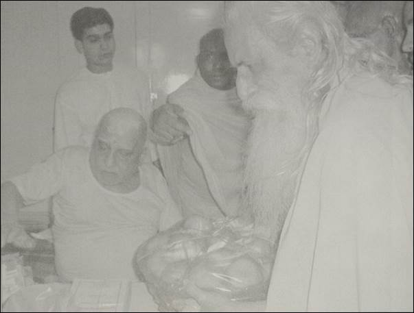 I came to Shivananda Ashram on 5th September 1965 and met my Guru, H.H. Sri Swami Krishnanandaji Maharaj near Bhajan Hall, after his speech on Bhagavad Gita. I took Mantra Diksha (Initiation) from him on 25th April 1966 in Holy Samadhi Mandir. I entered into Sannyasa order on 12th June 1975 in Sri Gurudev Kutir.