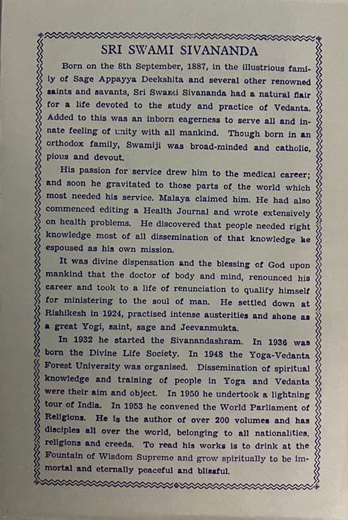 3. SIVANANDA REGALIA: An interesting, inspiring and instructive place where you can learn all about Sivananda, His Mission, His Achievements, His message in a nutshell. Sri Swami Ramananda will take you round.