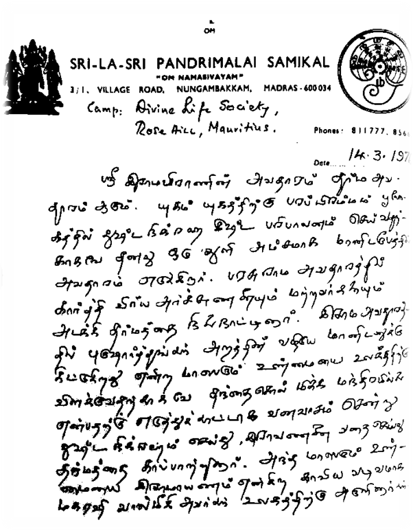 His Holiness Sri-La-Sri Pandrimalai Samikal