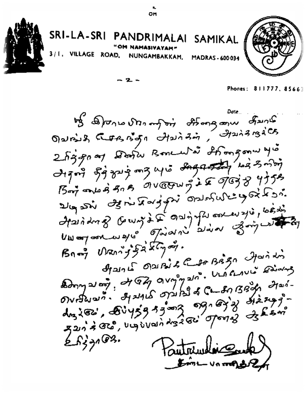 Sri-La-Sri Pandrimalai Samikal of Madras for his gracious foreword.