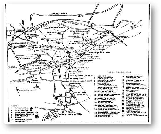 मानचित्र 3: वाराणसी मंदिरों को दर्शाता शहर