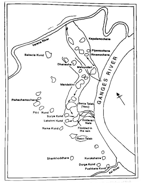 6. जेम्स प्रिंसेप का बनारस का मानचित्र, जिसमें काशी के तालाब और झीलें दिखाई गई हैं