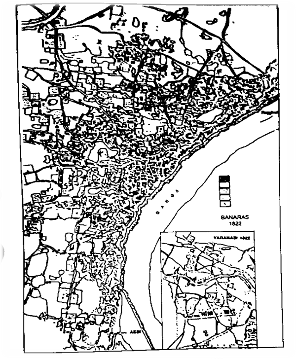 मानचित्र 10. शहर का विकास: बनारस 1822